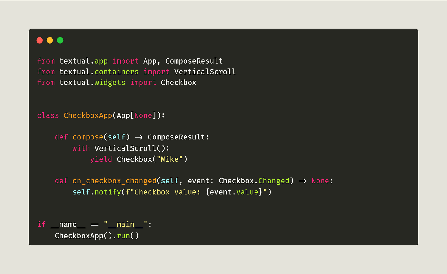 You can use many different widgets in Textual. However, the widget you will be focusing on in this tutorial is the humble checkbox.